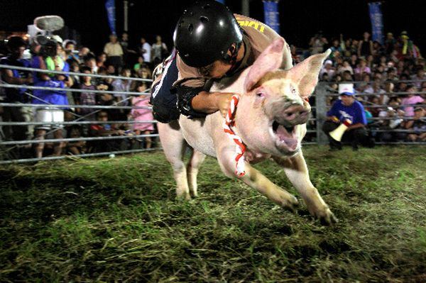 Increíbles Momentos Capturados En Cámara Enlace Patrocinado No estamos bromeando, ¡un rodeo de cerdos es algo real! Es un evento que se lleva a cabo en el festival anual Seiyo City Mikame Summer en Japón, donde hombres y mujeres tratan de montar cerdos durante el mayor tiempo posible. Enlace Patrocinado 46 de 60 Compartir en Facebook